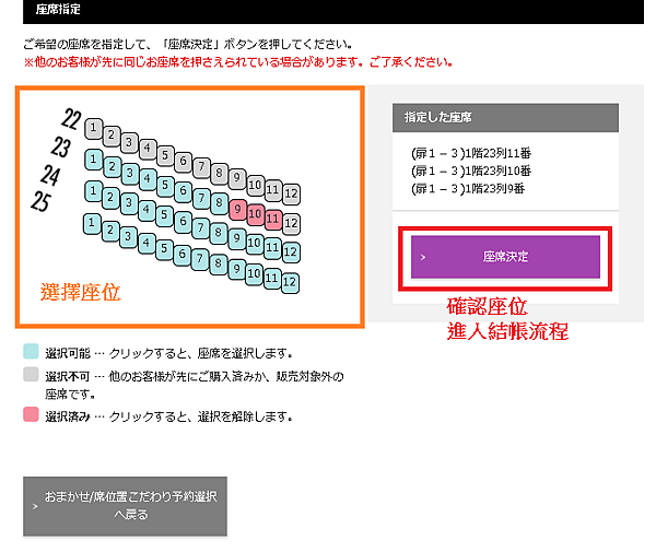 選擇 A. 電腦選位 → 進入結帳流程