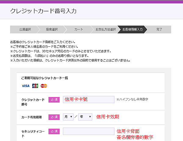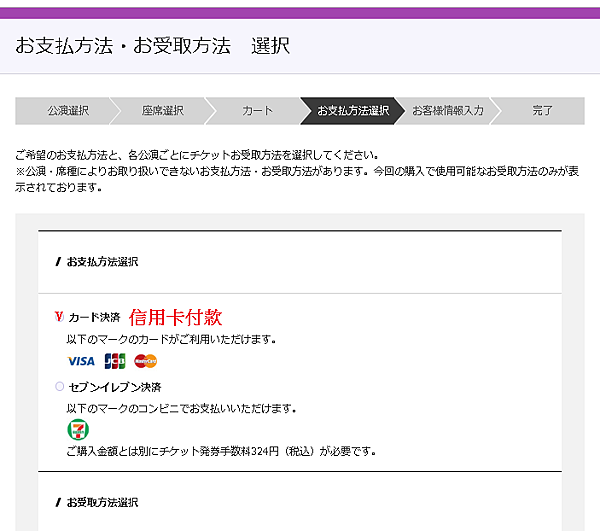 付款方式 → "信用卡付款" 取票方式 → "自動發券機"